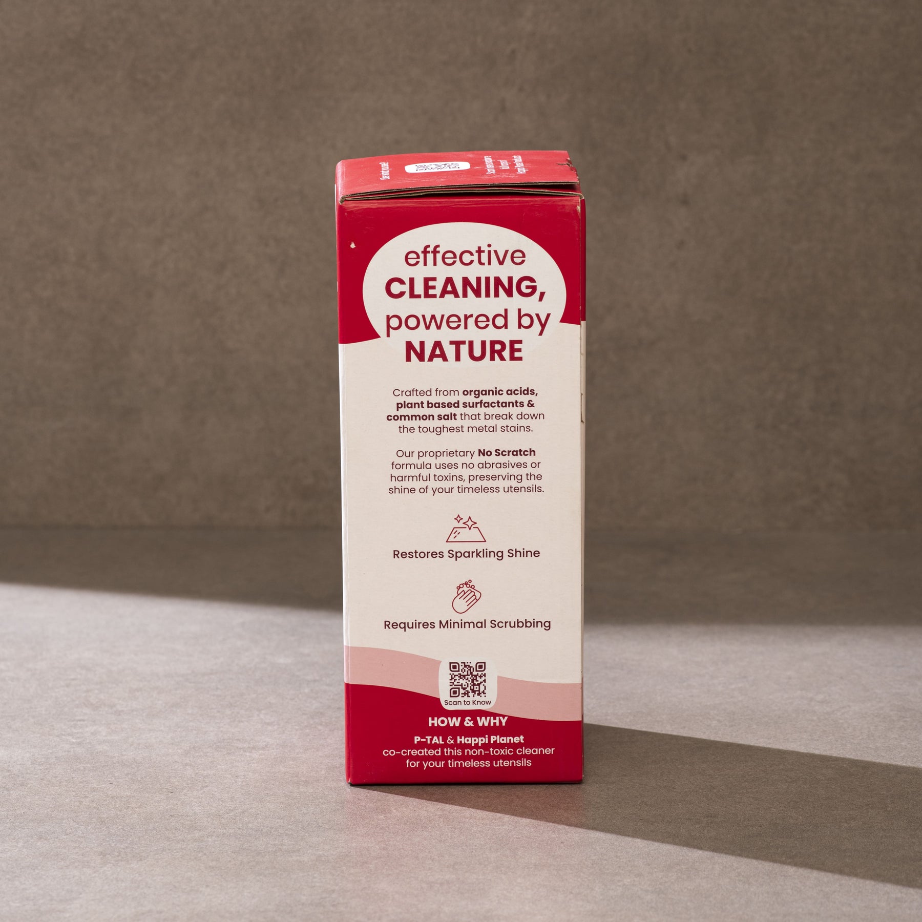 Bringing back the timeless glow of your cherished copper, brass, and bronze pieces just got easier. In collaboration with Happi Planet, experts in clean and conscious formulations, P-TAL proudly presents the Revolutionary De-oxidising Cleanser, a safe and plant-powered alternative to conventional metal cleaners.