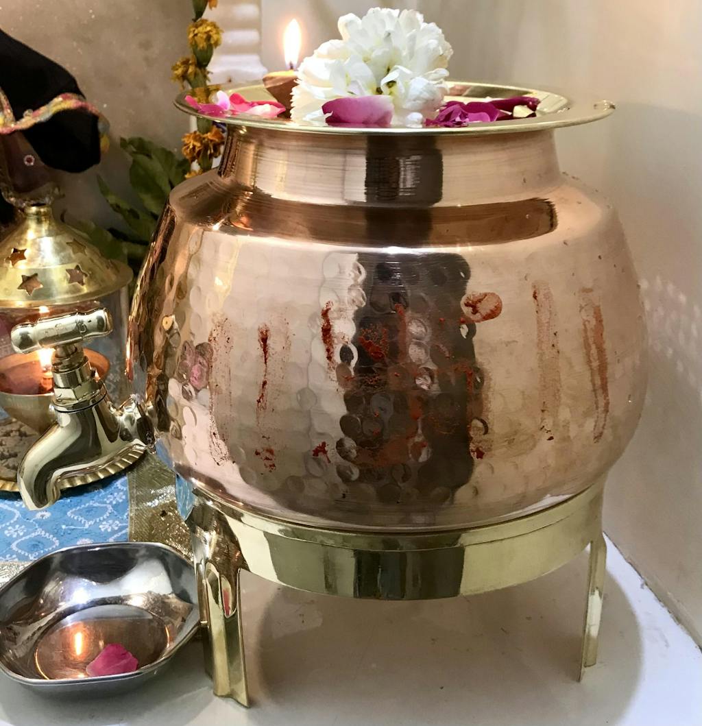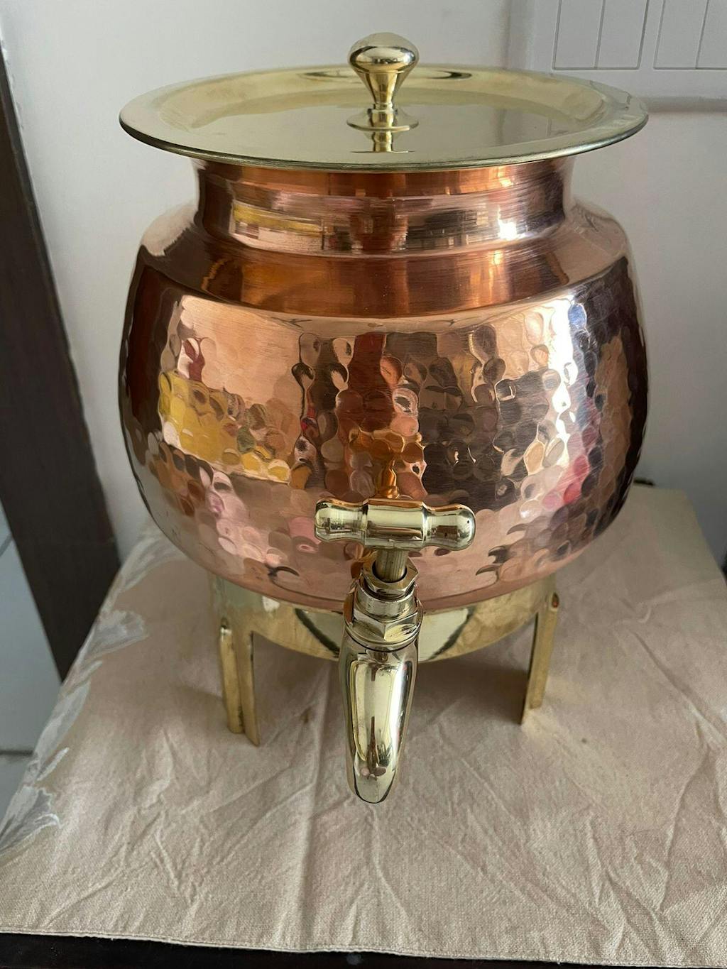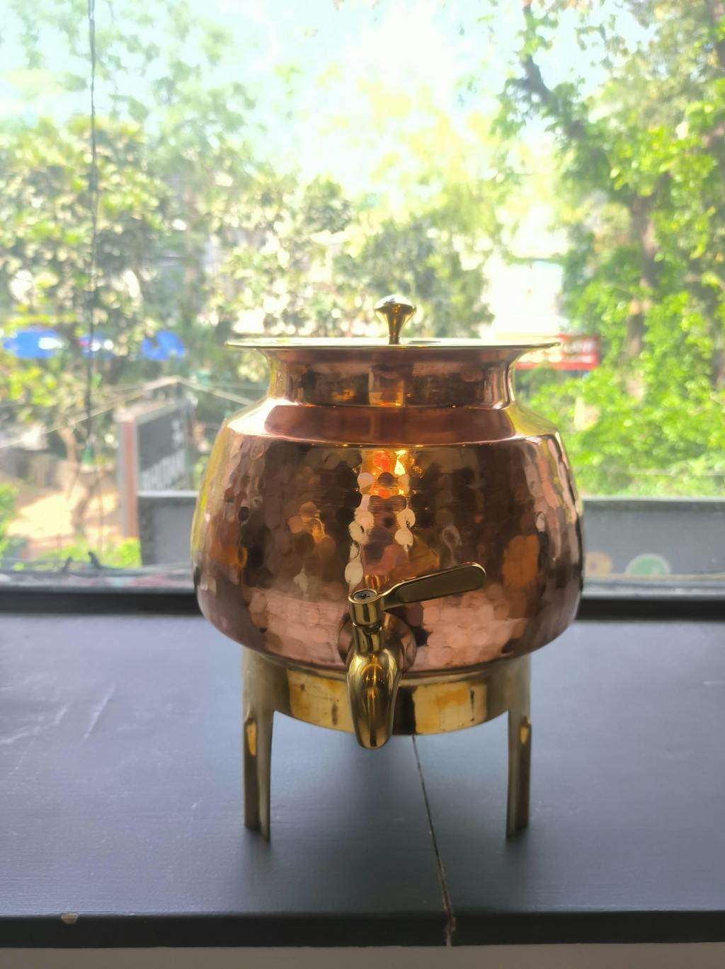 Its round bottom appearance makes it more attractive to our customers. Meticulously handcrafted by our Thatheras, this finely hammered dispenser is a uniquely handcrafted vessel for storing water. It has a tap fitted as its outlet for the convenience of our customers.