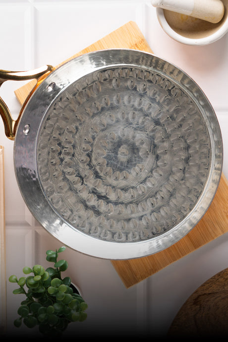 Lovingly crafted from 100% pure brass and lined with food-grade Malaysian tin (kalai), this frypan is free from toxins and synthetic coatings, nurturing your body with every meal and supporting digestive health the way nature intended.
