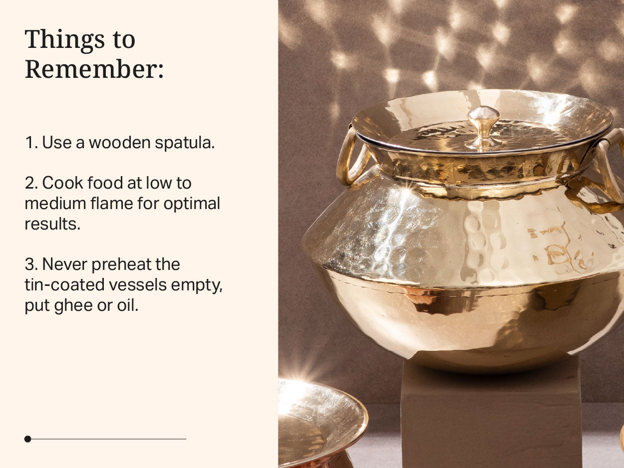 Lovingly crafted from 100% pure brass and lined with food-grade Malaysian tin (kalai), this patili is free from toxins and synthetic coatings, nurturing your body with every meal and supporting digestive health the way nature intended.