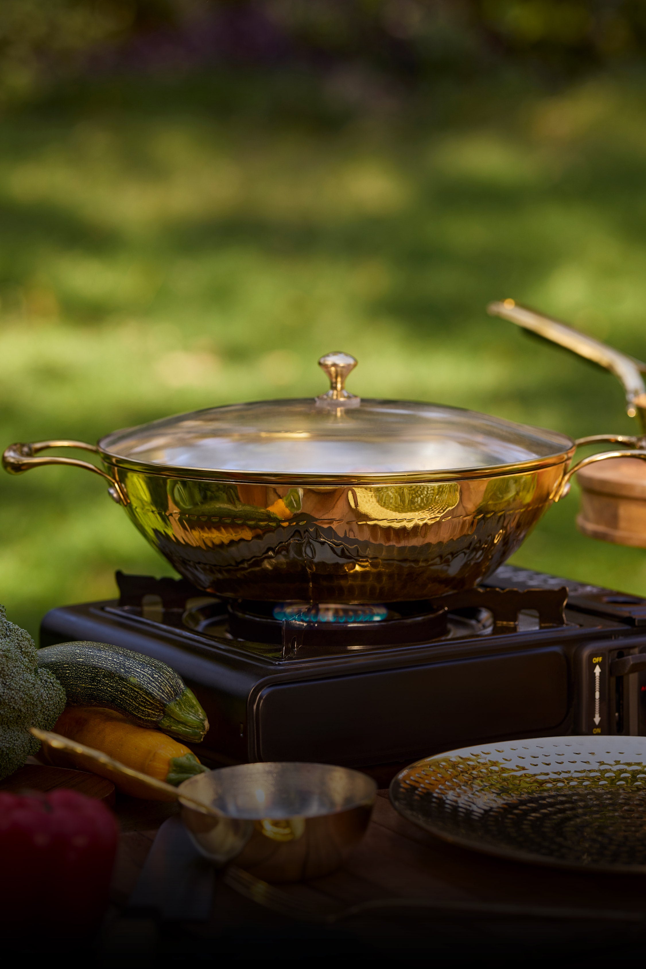Flat Base Brass Kadhai with Glass Lid-Naturally non stick, Non Toxic, Teflon Free