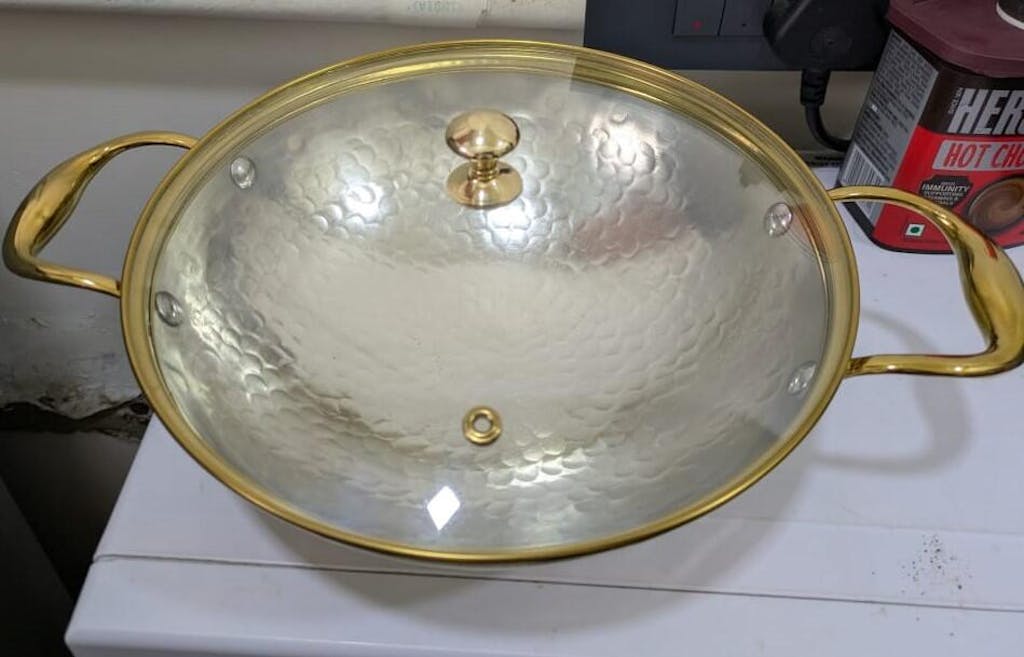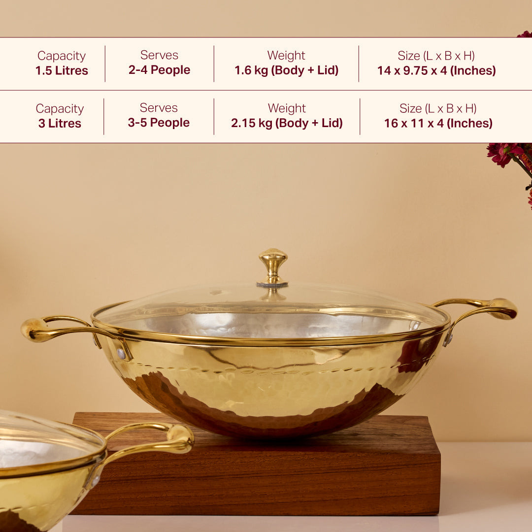 Brass Kadhai with Glass Lid (Round Base)