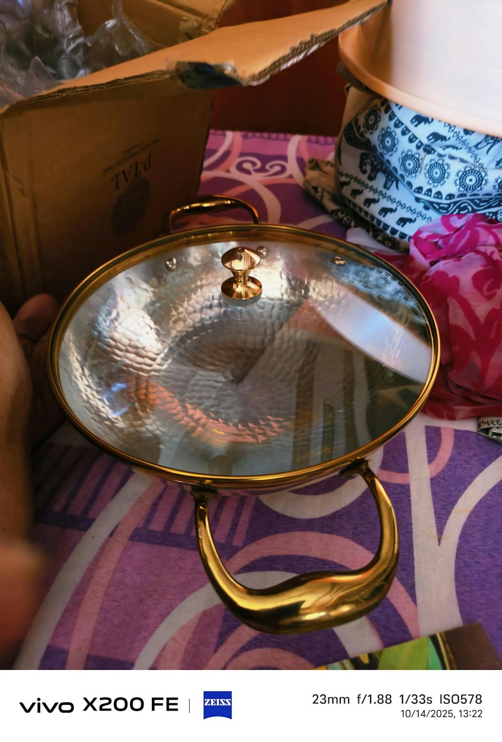 - Finish: Hand-hammered golden exterior; silver-toned tin-coated interior