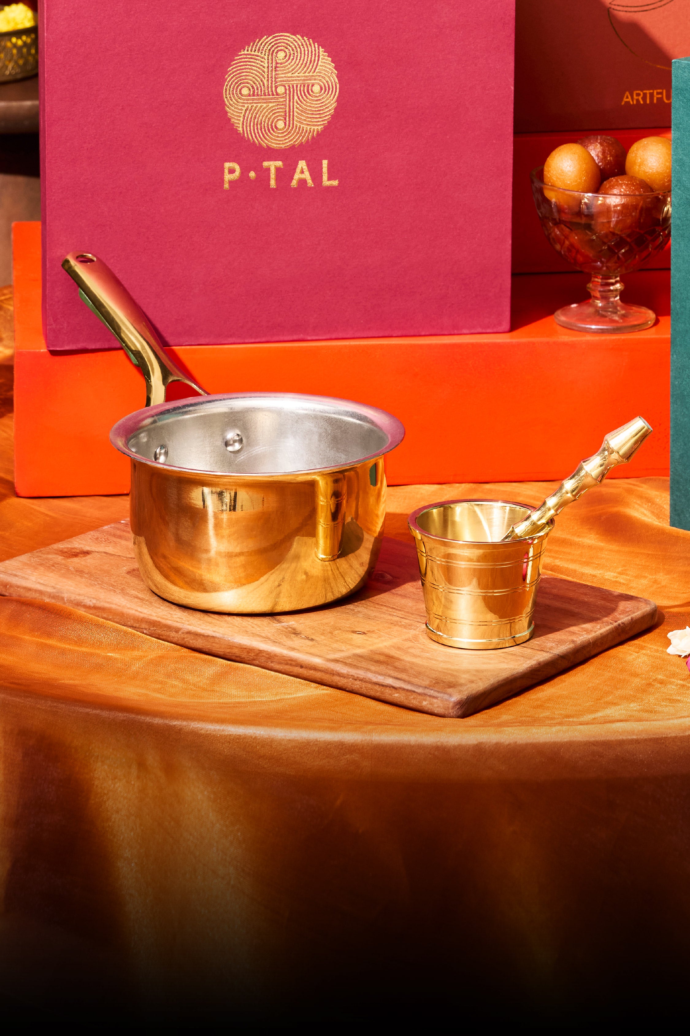 Chai Starter Kit (Brass Saucepan with Insulated handle + Brass Mortar and Pestle)