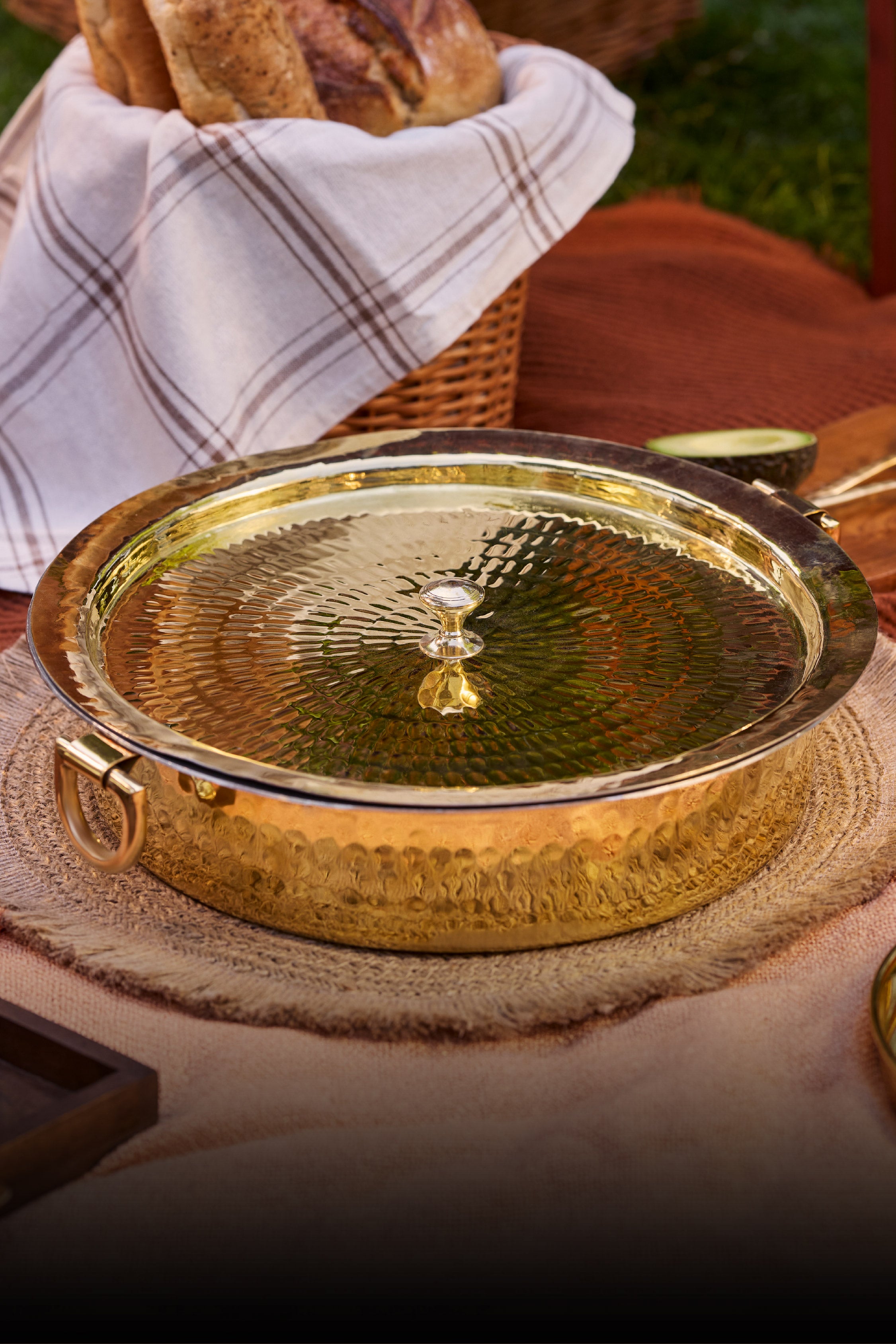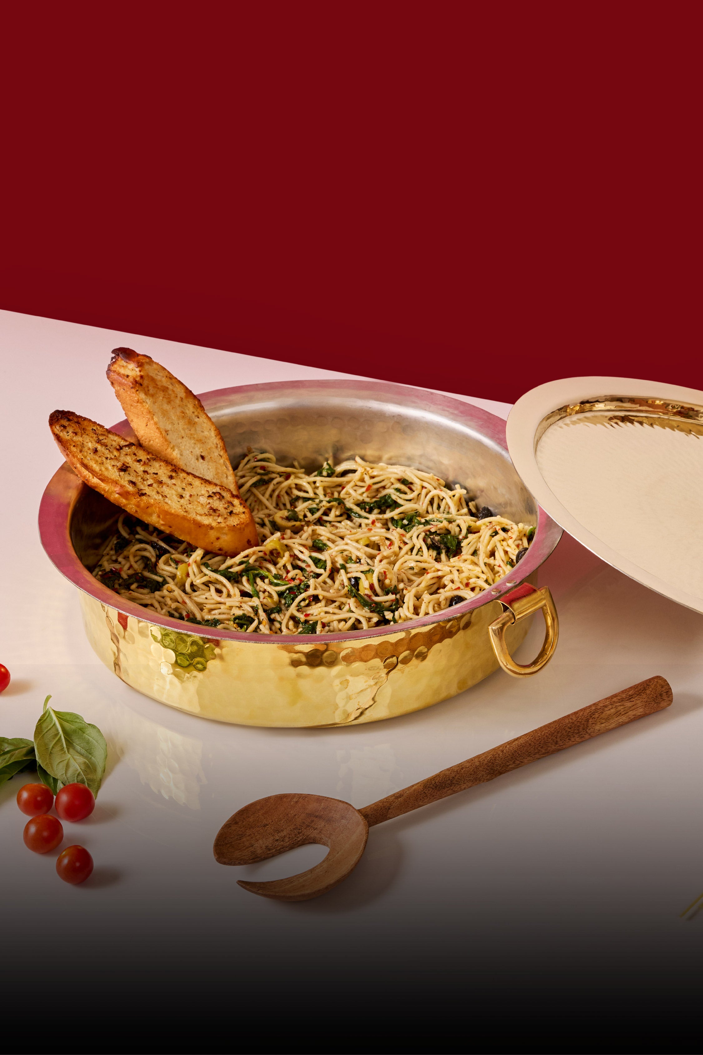 From slow-simmered comfort meals to oven-baked feasts, the brass lagaan adapts to your rhythm. Its generous depth invites layered cooking—ideal for dishes that need time, space, and steady heat. A piece that works across meals and moments, with form and function in perfect balance.