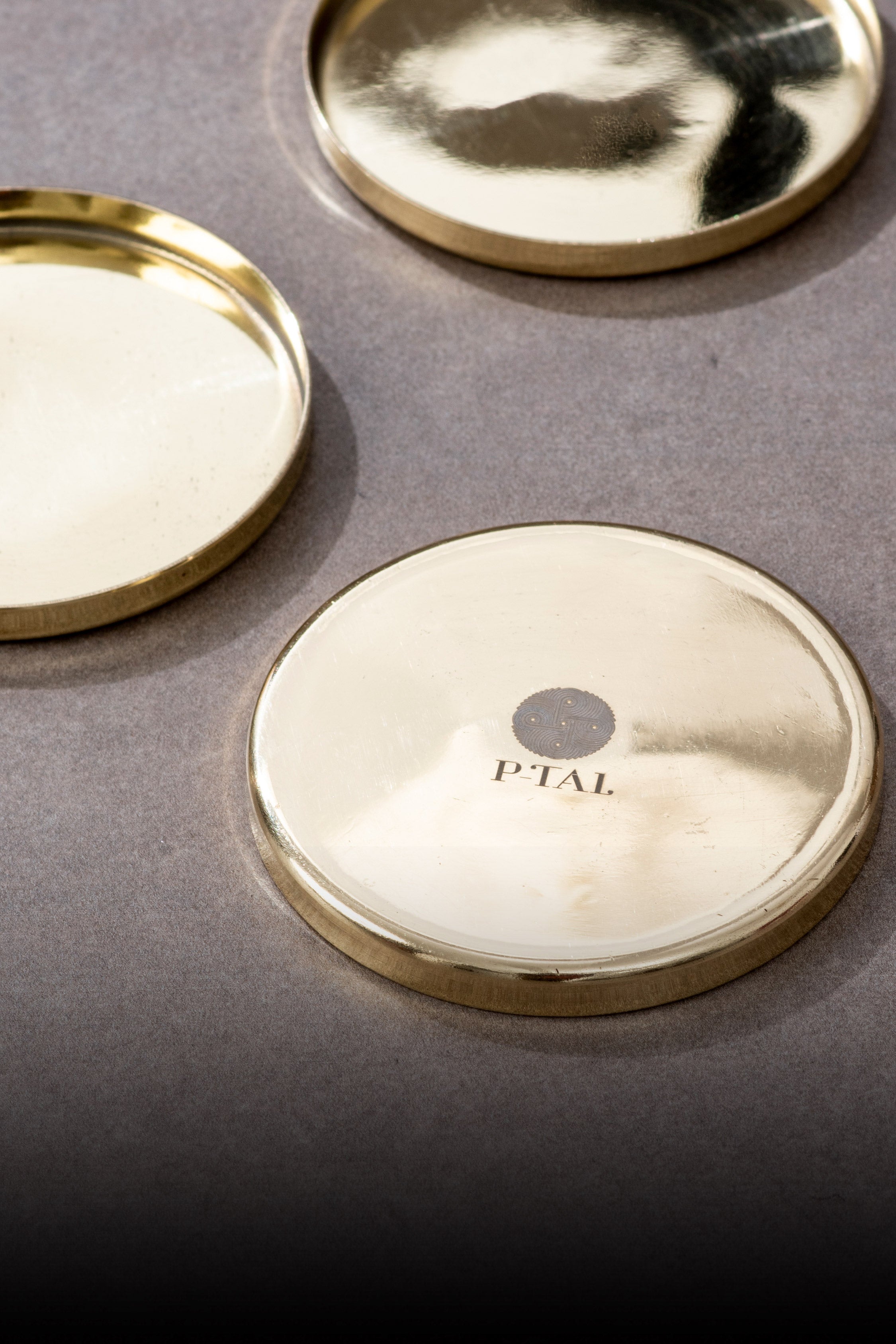 Add a layer of quiet luxury to your table with P-TAL’s Brass Coasters – Set of 6. Handcrafted in pure brass and finished to perfection, these versatile pieces go beyond their purpose. Use them under glasses, as a sweet server, or just as a decorative accent on a well chosen table. They are accents of elegance, honoring polished craftsmanship in every element, not only coasters.
