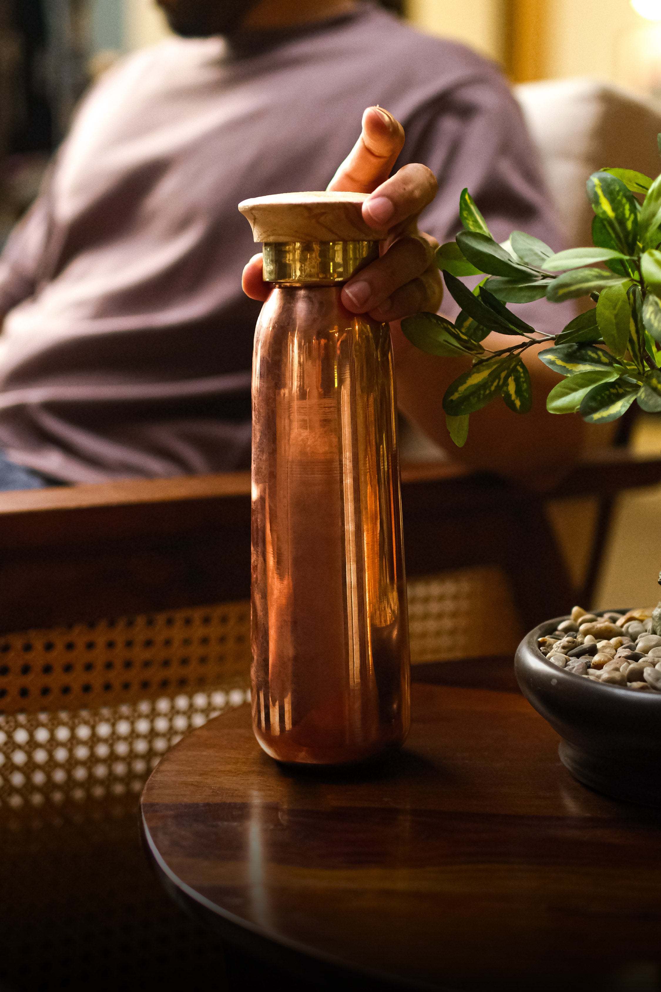 P•TAL’s Copper Water Bottle brings you the benefits of ‘Tamra Jal’ in a design that fits effortlessly into your everyday life. Crafted from pure copper and finished with a wooden leakproof cap, this sleek bottle reintroduces a timeless wellness ritual in a form that’s both functional and beautiful. According to Ayurveda, storing water in copper balances the body's three doshas and enhances iron absorption, pH balance, and immunity. Whether at home, work, or on the move — this is hydration with intention.