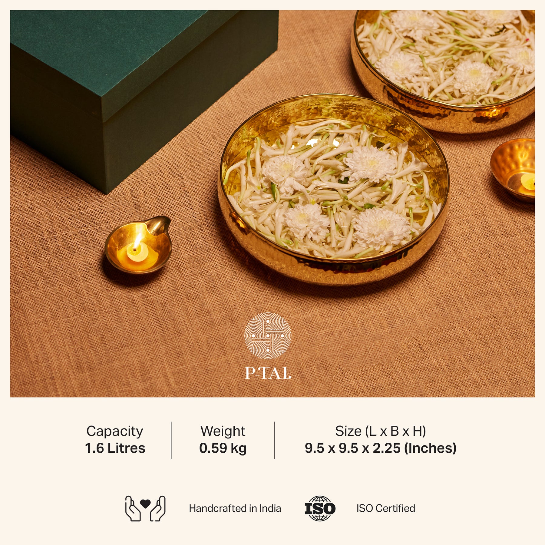 Bring heritage to your table—or your décor—with P-TAL’s Brass Urli / Nacho Bowl. Made by talented thatheras and presented in a warm golden tint, this work easily moves between a lovely showpiece and a serveware bowl. Perfect for nachos, pakoras, or popcorn, it also works as a decorative feature loaded with flowers, potpourri, or floating candles. More than just a bowl, it honors timeless versatility.