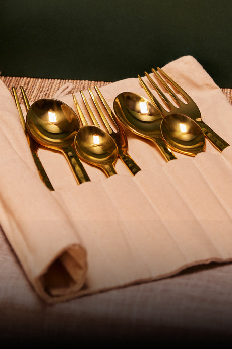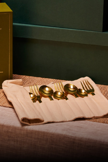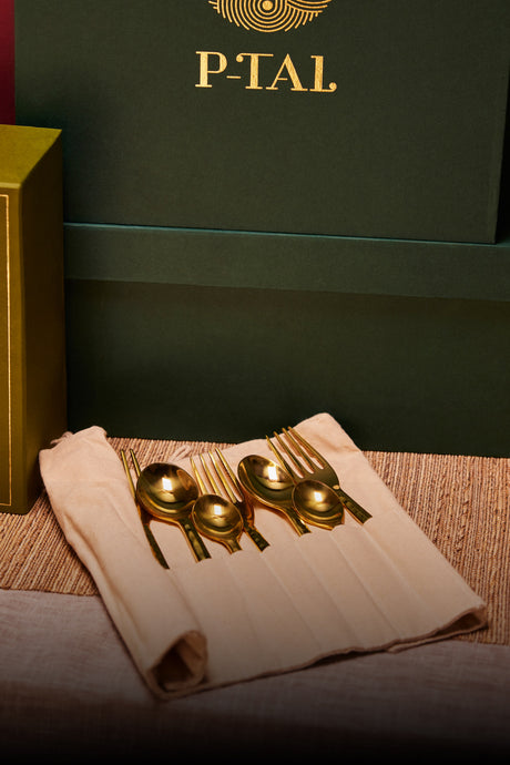 Make every meal feel like a celebration with P-TAL’s Gift Box of Engraved Brass Forks & Spoons. This thoughtfully crafted set of 6 brass forks and 6 brass spoons comes nestled in a rich maroon gift box. It is perfect for festive tables or as a timeless gift. The cutlery is hand-engraved and polished to perfection. It adds a warm, elegant charm to every bite. It ensures to blend in tradition with everyday refinement.