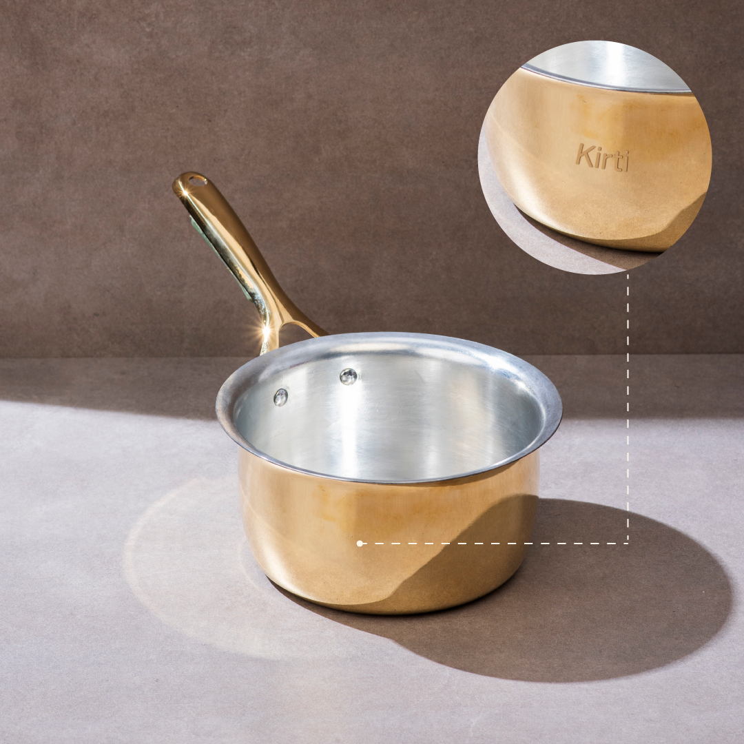 Lovingly crafted from 100% pure brass and lined with food-grade Malaysian tin (kalai), this saucepan is free from toxins and synthetic coatings, nurturing your body with every meal and supporting digestive health the way nature intended.