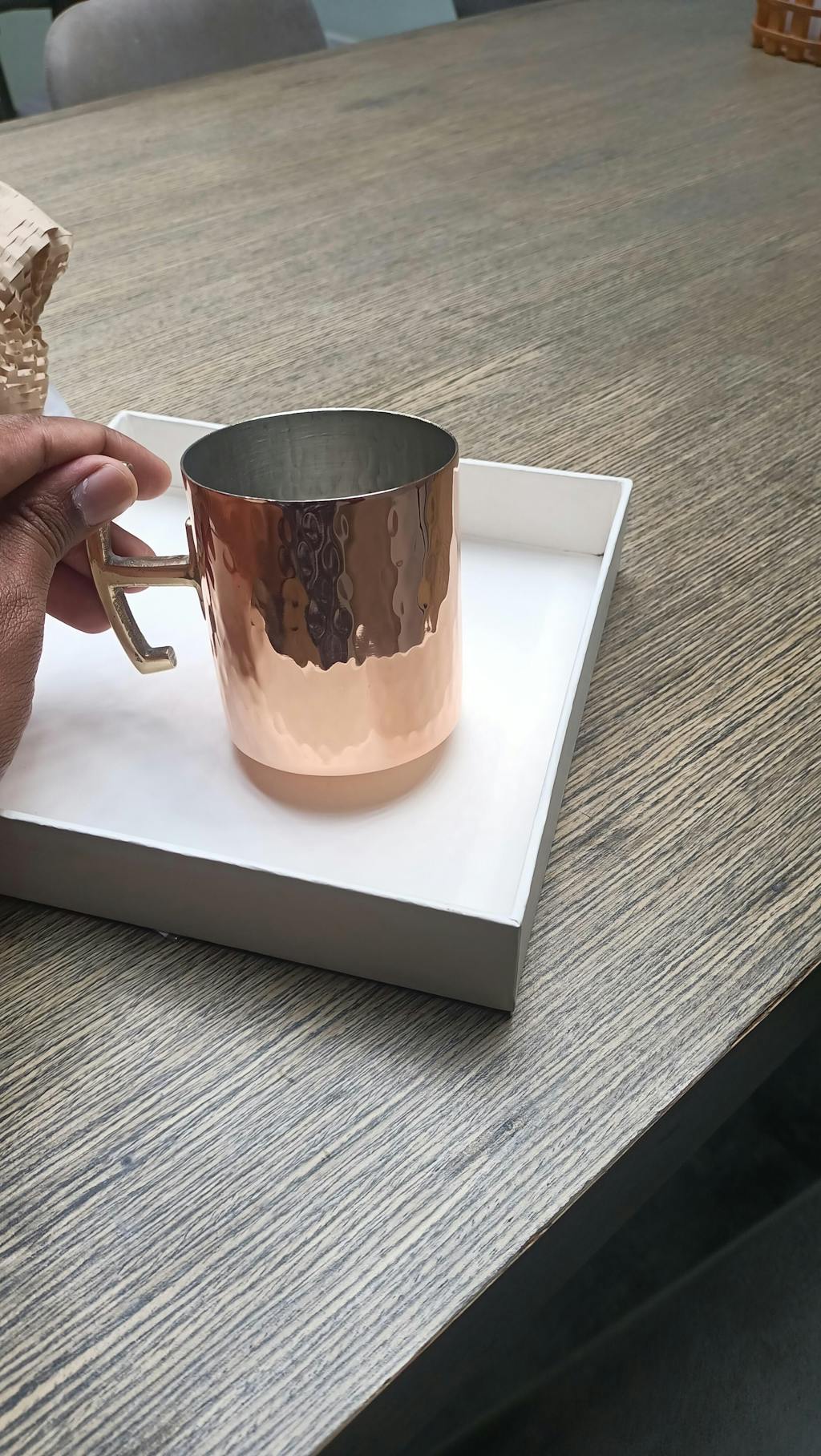 - Finish: Rose Gold hammered finish with golden handles (handcrafted in pure brass) with a tin-coated and silver finish on the inside.